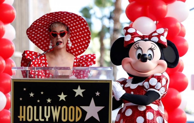 | Nữ ca sĩ nổi tiếng của Mỹ Katy Perry bên cạnh hai hình tượng nổi tiếng của hoạt hình thế giới là Mickey và Minnie. Chuột Minnie là một nhân vật hoạt hình do Xưởng phim Walt Disney sáng tạo, xuất hiện lần đầu tiên năm 1928 trong bộ phim Tàu hơi nước Willie. |