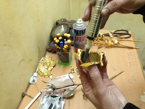Sau khi có mẫu sáp và tạo ra bông hồng bằng sáp, công đoạn tiếp theo là đúc. Chất liệu để đúc những bông hồng này là đồng, bạc trắng, vàng nguyên khối, tùy nhu cầu đặt hàng.