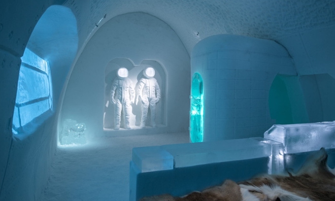Mirror ngày 16-1 cho hay, Icehotel là khách sạn đặc biệt của thế giới được làm hàng năm kể từ năm 1989, vật liệu hoàn toàn từ băng và tuyết ở Lapland, Thụy Điển. Khách sạn Icehotel năm nay có 35 phòng do 36 kiến trúc sư, nghệ sĩ đến từ 17 quốc gia thiết kế. 30 000 m3 băng tuyết được dùng để xây khách sạn. Công trình tồn tại khoảng 3 tháng, hết mùa băng tuyết.