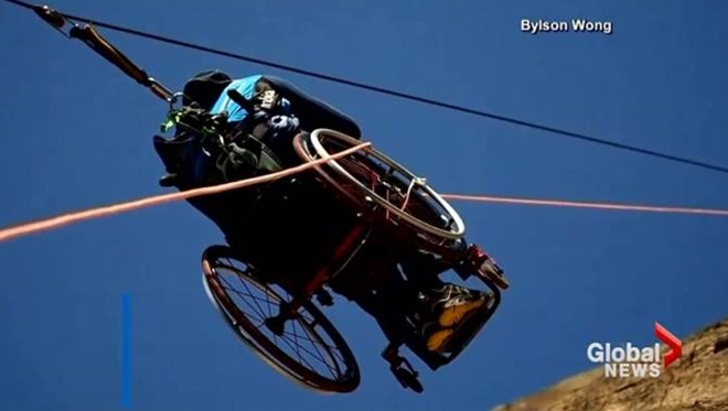 Vận động viên tàn tật leo núi dựng đứng bằng xe lăn