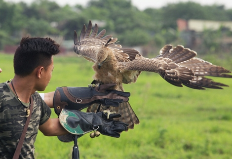 Mỗi "chúa tể bầu trời" đều mang một sứ mệnh oai hùng, thể hiện đẳng cấp của người chủ. Anh Trung Hiệp bật mí: Chú đại bàng nào có bộ móng vuốt sắc như dao, mỏ cứng như đá, mắt to đen dữ tợn cùng bộ lông cánh thật dài thì sẽ làm rạng danh ông chủ.