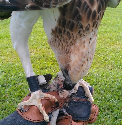 | Bộ móng vuốt và mỏ sắc như dao của đại bàng luôn phải có cao su bảo hộ để tránh gây nguy hiểm cho người chơi. |
