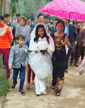 Ngày cưới 18/12 vừa qua là một ngày thực sự ý nghĩa với họ, vượt qua mọi rào cản từ gia đình, khoảng cách địa lý, cả hai nở nụ cười mãn nguyện bên nhau. Có khoảng 400 người đến chúc phúc cho Nhật, mâm cỗ chật kín. Người già sức khỏe yếu cũng cố đến dự.