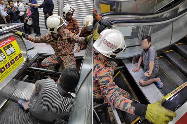 Sĩ quan chỉ huy Mohd Zuhair Faisal Zulkifli cho hay, phải mất tới gần 1 giờ, lực lượng cứu hộ mới “giải thoát” được chân của người đàn ông “đen đủi” ra khỏi thang cuốn.