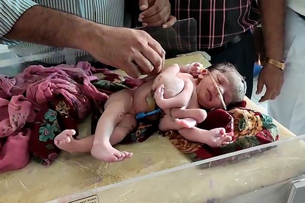 Các bác sĩ tin rằng, bé gái có 4 chân và 3 tay là 1 trong số 3 bào thai của sản phụ, tuy nhiên, bé gái này và 1 bào thai khác đã dính liền với nhau. Theo bác sĩ, sản phụ và bé trai trong tình trạng ổn định.