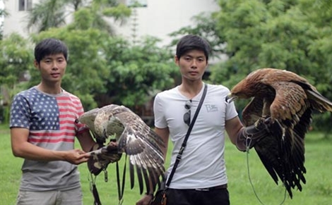 | Cặp song sinh Việt Anh - Nhật Anh chia sẻ “kỹ nghệ” huấn luyện chim săn. |