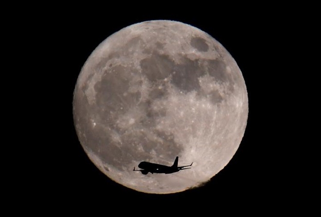 | Chuyên cơ quá nhỏ bé so với siêu trăng. |