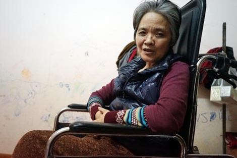 Bà Nguyễn Thị Quyên kể lại quãng thời gian được chồng chăm sóc. |