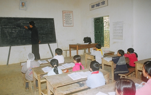Nhờ có người mẹ tần tảo như vậy, năm 1996 anh Tài là người duy nhất học hết lớp 12 trong xã và được cử đi học sư phạm trên tỉnh. Ra trường, anh quay về quê hương (xã Ngọc Chung) thực hiện ước mơ mang con chữ về với bản làng. Chia sẻ với tôi về những ngày đầu đi dạy của mình, thầy Tài vẫn không thể quên được những tháng ngày phải đến từng nhà vận động cha mẹ học sinh ở những thôn khó khăn bậc nhất như Lũng Chuông, Lũng Bằng, Lũng Choát… cho các em tới lớp.