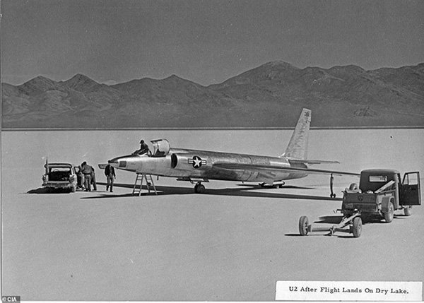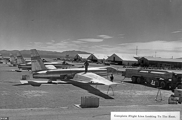 | Máy bay do thám U-2 của Mỹ tại địa điểm thử nghiệm trong Khu vực 51 vào năm 1955. |