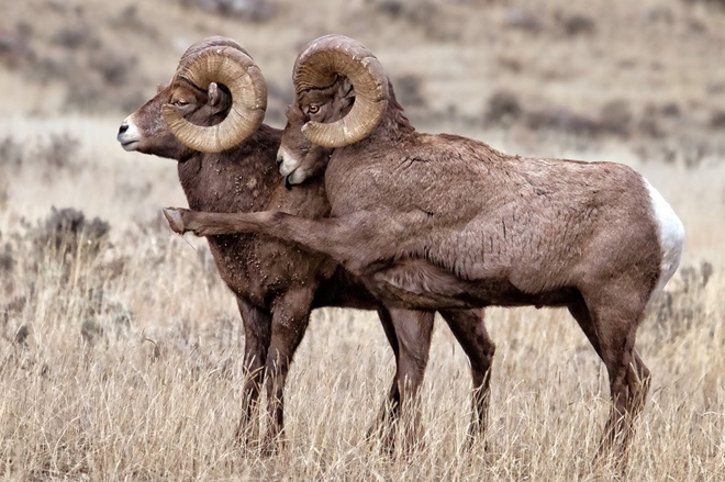 | Đi về hướng đó!. Hai con cừu Bighorn tại Montana, Mỹ đã lọt vào ống kính của nhiếp ảnh gia Patricia Bauchman. |