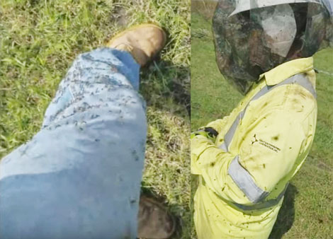 | Phải mang áo bảo hộ, mũ chống muỗi. |