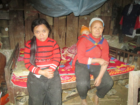 | Bà Đặng Mùi Mui (56 tuổi) cùng con gái bị dị tật là Triệu Mùi Gin vì kết hôn cận huyết thống. |