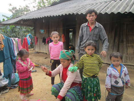 | Anh Hoàng A Dìa và chị Mã Thị Mị cùng những đứa con. |