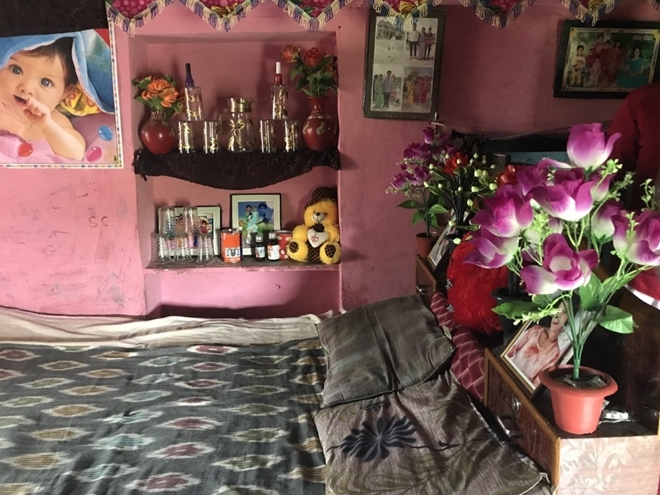 Căn phòng trong ngôi nhà nhỏ nằm dọc theo đường cao tốc ở nông thôn Ấn Độ này là nơi cô sinh ra và lớn lên. Đây là nơi cô mơ ước trở thành bác sĩ và cũng là nơi mà cô từng làm việc như một gái mại dâm.