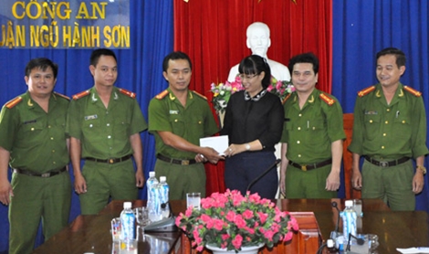 Lãnh đạo và các trinh sát của Công an quận Sơn Trà Đà Năng được nhận giấy khen vì có thành tích phá nhanh vụ cướp giật tài sản của phụ nữ đi đường.