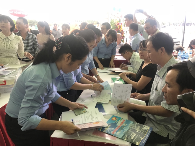 | Trên 600 khách hàng đến tham dự lễ trao giấy chứng nhận quyền sử dụng đất. |