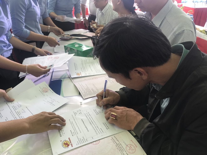 | Khách hàng ký biên bản nhận giấy chứng nhận quyền sử dụng đất. |