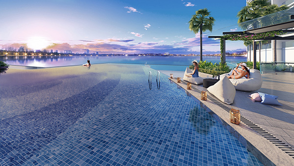 Đặc biệt, ngay từ ban công kính rộng tới 7m2 của các căn hộ hướng hồ, cư dân sẽ được thưởng lãm sắc xanh lam – mộc hòa quyện của thiên nhiên mỗi ngày.