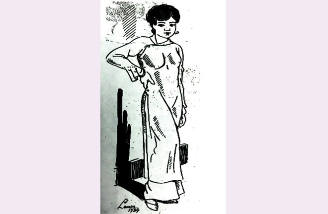 Mẫu áo dài đầu tiên do họa sĩ Nguyễn Cát Tường vẽ năm 1934.