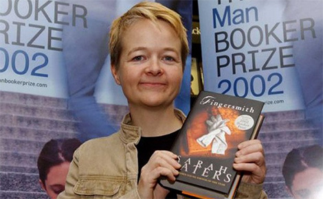 | Nhà văn Sarah Waters với cuốn tiểu thuyết “Fingersmith” của bà. |