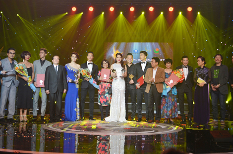 Khó khăn về kinh phí nhưng "Cánh diều" 2014 vẫn có một đêm trao giải ấn tượng (Trong ảnh: Đoàn làm phim "Hương ga", "Lạc giới", "Những đứa con của làng" nhận giải Cánh diều bạc).