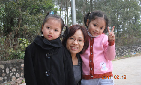 | Nhà văn Phong Điệp và các con gái khi còn nhỏ. |