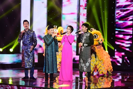 | Nhiều cuộc thi tìm kiếm tài năng âm nhạc tiếp tục lên sóng truyền hình năm 2016. Trong ảnh: "Bộ tứ quyền lực" của Cuộc thi "Thần tượng Bolero" mùa đầu tiên đang lên sóng VTV vào tối thứ 5 hàng tuần. |