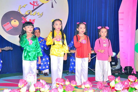 | Các em thiếu nhi tham gia chương trình "Giọng ca nhí - Hò Xự Xang Xê Cống". |