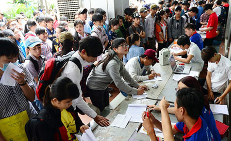 | Thí sinh nhốn nháo làm thủ tục rút hồ sơ xét tuyển trong kỳ thi quốc gia 2015. |