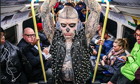 | Người mẫu "xác sống" Rick Genest, nghệ danh Zombie Boy giữ kỷ lục Guinness thế giới là người có nhiều hình xăm trên cơ thể nhất (176 hình xăm) và nắm giữ kỷ lục xăm nhiều hình xương xẩu nhất (139 hình). |