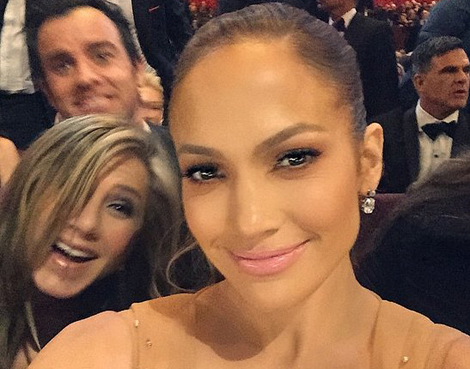 | Diễn viên Jennifer Lopez tranh thủ chụp ảnh "tự sướng" trên thảm đỏ. |