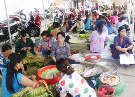 | Người dân Sài Gòn tưng bừng ngày hội bánh tét mừng Tết Bính Thân 2016. |