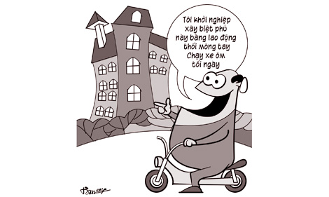 Vẫn liên quan đến chuyện nguồn tiền xây "biệt phủ", trước đây từng có một quan chức bảo đấy là do tiền mình "chạy xe ôm" ngoài giờ làm từ thời còn trai trẻ. Một người khác thì bảo "tôi đã lao động đến thối cả móng tay".