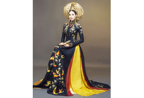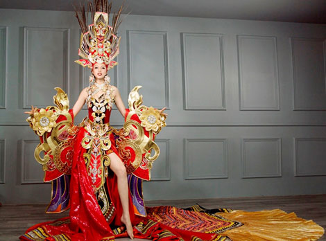 | Trang phục dân tộc của Phạm Hương tại cuộc thi “Hoa hậu Hoàn vũ 2015”. |