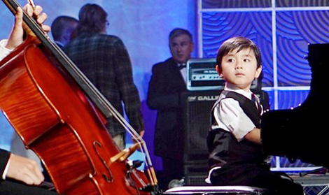 | Evan Le, một em bé người Việt tại Mỹ được xem là thần đồng âm nhạc, từng xuất hiện trong nhiều chương trình truyền hình nổi tiếng. |