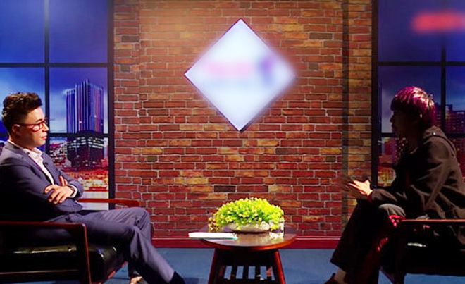 | Nhân vật bí ẩn được cho là Minkook (bên phải) tố bị ông bầu đánh đập, gạ tình khi xuất hiện trong một chương trình truyền hình lên sóng thời gian gần đây. |