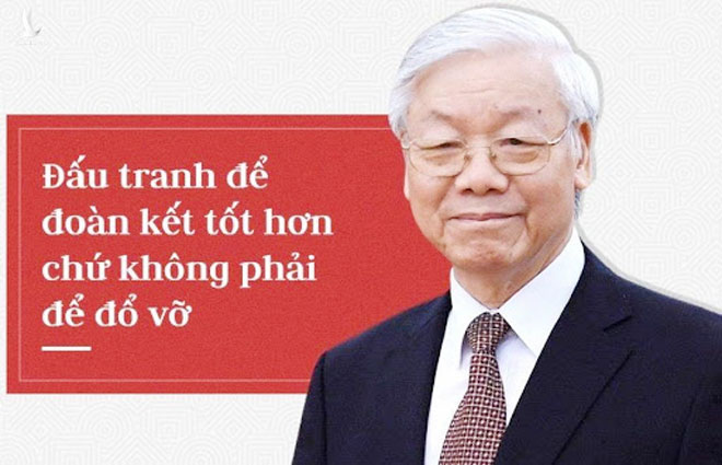 | Nói về việc nhiều cán bộ cao cấp, tướng lĩnh bị xử lí kỷ luật trong những năm qua, Tổng Bí thư Nguyễn Phú Trọng cho rằng đấu tranh để đoàn kết tốt hơn chứ không phải để đổ vỡ. |