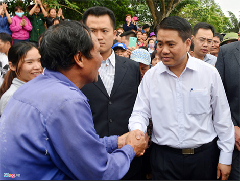 | Người dân Đồng Tâm trong cuộc gặp gỡ, đối thoại với Chủ tịch UBND thành phố Hà Nội Nguyễn Đức Chung. |