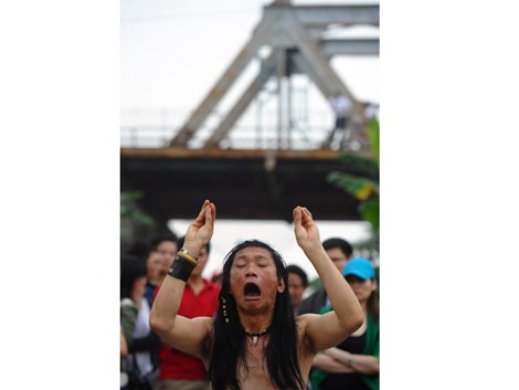 | Nghệ sĩ Đào Anh Khánh trong một chương trình nghệ thuật trình diễn. |