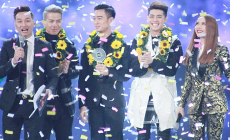 | Những ca khúc trong chương trình "Hòa âm ánh sáng" đều được phối lại theo phong cách nhạc điện tử. Trong ảnh: Đội của Noo Phước Thịnh giành giải quán quân trong chương trình "Hòa âm ánh sáng" 2016. |
