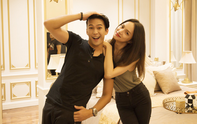 | Hương Giang Idol và Philip Thiroj - quán quân "The Face Men Thailand" mùa đầu tiên trong hậu trường sản xuất MV "Em đã thấy anh cùng người ấy". |