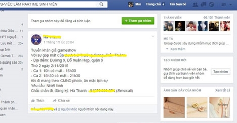 | Một dạng tin rao tuyển fan cho ca sĩ trên mạng xã hội Facebook. |