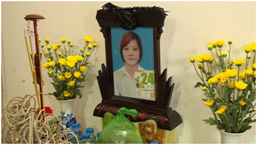 Chị Đào Thu Thủy khi còn sống (ảnh trên) và di ảnh chị Thủy. |