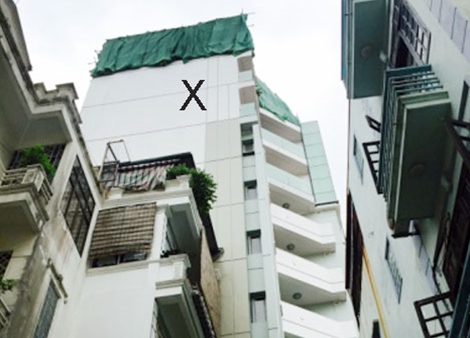 | Công trình xây dựng sai phép ở số 3 ngõ 8 Lý Nam Đế (X) đang phải cưa ngọn do xây vượt tầng. |