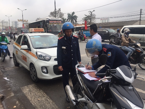 | Thanh tra GTVT Hà Nội lập biên bản xử lý vi phạm của một xe taxi sáng 7-2. (Ảnh chỉ có tính chất minh họa). |