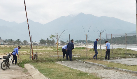 | Công nhân của Tập đoàn Trung Thủy Đà Nẵng tiến hành tháo dỡ một đoạn rào chắn B40 tại phía nam khu dự án du lịch Lancaster Nam Ô. |