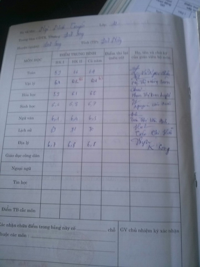 Ngoài ra, ông Hòa còn chỉ đạo các giáo viên cấp dưới của trung tâm phải ký, cho điểm “khống” vào học bạ và mạo danh chữ ký của cả giáo viên cũ vào học bạ của một số học viên học lớp 10, 11 để các học viên này được học lớp 12, được cộng điểm thi tốt nghiệp THPT quốc gia. Những giáo viên của trung tâm nếu không làm theo chỉ đạo này sẽ bị ông Hòa trù dập, xét không hoàn thanh nhiệm vụ, đưa vào diện tinh giản biên chế của trung tâm…
