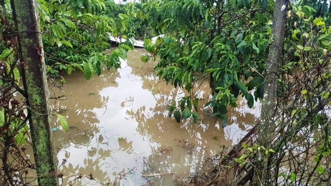 | Người dân dọc QL27, đoạn từ Km167+100 đến Km170+700, xã Liên Hiệp, huyện Đức Trọng khốn khổ mỗi khi có mưa lớn |