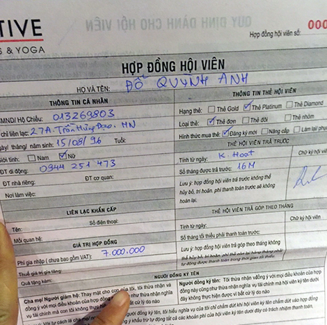 Khi trình báo với Công an phường Phương Mai, chị Cao Bích Thư (Hà Nội) cho biết, chị vừa mua gói HLV 100 buổi với giá trị 25 triệu đồng, mới tập được vài buổi thì trung tâm báo đóng cửa. Ngoài gói HLV, chị Thư còn mua nhiều gói tập khác tại Active với tổng giá trị lên tới 50 triệu đồng. Tuy nhiên, khi trung tâm báo đóng cửa, trên dữ liệu máy tính của công ty không hề có hợp đồng của chị. Lúc này, chị Thư mới vỡ lẽ đã bị bán hợp đồng khống với chữ kí giả mạo.